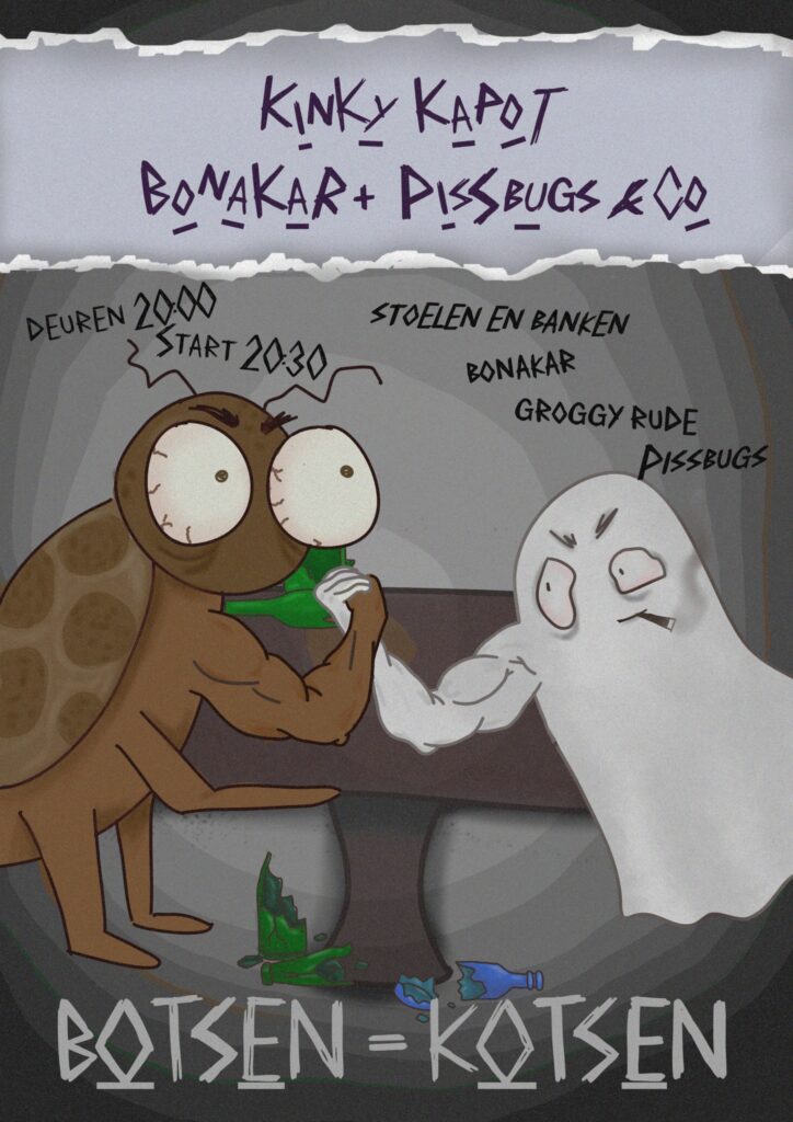 De Gentse alternatieve underground punkband Pissbugs zet je aders op springen met een muzikale schop onder je reet… De band die ‘Kinky kapot’ belichaamt in hun sound. Alles wordt gesloopt met een mix aan new wave, punk, stoner, grunge, noise… !