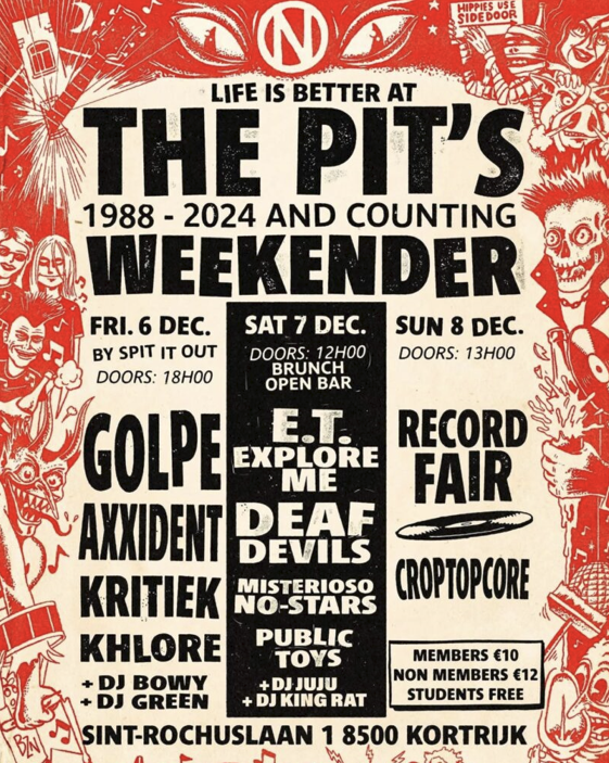Op vrijdag is het (ondertussen) traditioneel aan Spit It Out om een avond vol hardcore en aanverwanten te presenteren. D-beat en rauwe (hardcore)punk uit Frankrijk, Italië en ons eigen landeken.