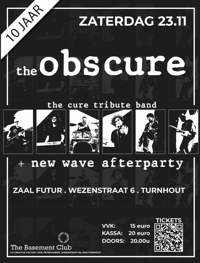 The Cure doet het al (sinds 1976) bijna 40 jaar en heeft een nieuw album uit, maar dat schuiven we op 23 november – ondanks zijn grote pracht – even aan de kant, want hun Belgische tributeband The obsCURE bestaat 10 jaar! En dat vieren ze met een liveshow in zaal Futur in Turnhout.