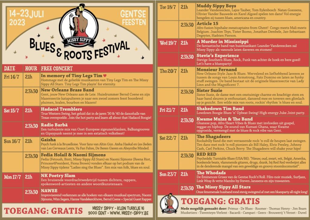 Met de woorden van wijlen Tiny Legs Tim, vliegt de Gentse blues- & rootsclub Missy sippy de Gentse Feesten in!