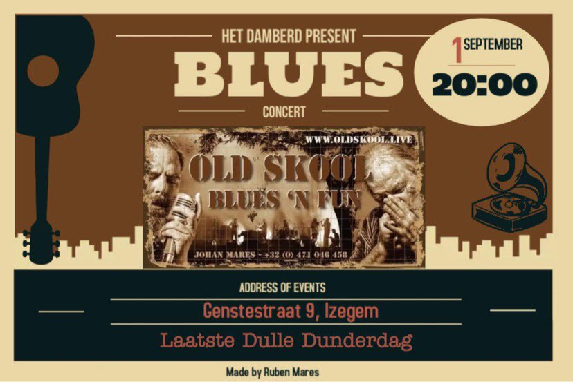Neem een sigaar mee in je binnenzak en hou je klaar voor een portie stomende ‘blues and fun’, want Old Skool brengt een gevarieerde set van oude bluesstandards tot dansbare swing. De oerdiepe stem van de Brugse frontman Johan Mares brengt wilde woorden tot leven, onder begeleiding van psychedelische gitaar, harmonica, opzwepende baslijnen van Carlo en pittig strakke ritmes van drummer Gino Claeys. Old Skool dompelt het publiek onder in hun energieke live-beleving van intense old school blues.