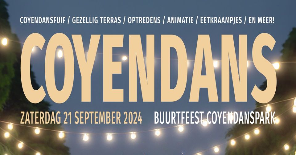 Hét jaarlijkse buurtfeest van de wijk Macharius-Heirnis komt weer dichterbij. De place to be is het Coyendanspark in Gent op zaterdag 21 september. De festiviteiten worden afgetrapt om 13u met de traditionele (doch in een vernieuwd jasje) Coyendansparade. Vanaf 15u tot laat in de nacht kan je er genieten van een flinke dosis live-muziek, gevolgd door een fuif.