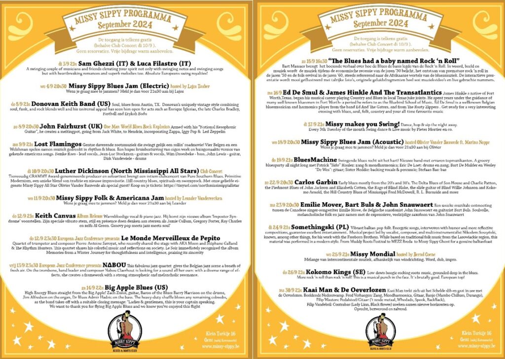 De Gentse blues- & rootsclub Missy Sippy in Gent pakt ook in september uit met een stevig programma!
