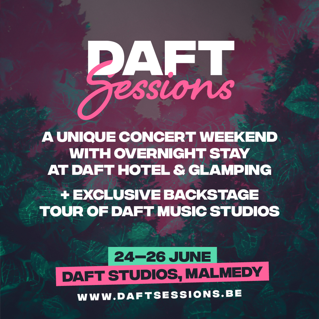 Live concerten die voor verfrissing zorgen in Belgische muziekscene, akoestische sets in open lucht rond het kampvuur en een dj vanuit de Daft caravan in de tuin… simpelweg aangeboden aan de gasten in de kamers of glamping van Daft Hotel.