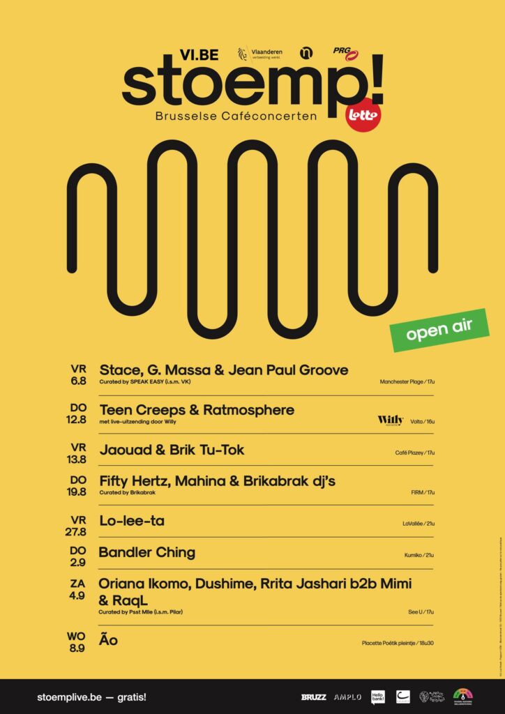 Verse venues, jonge curatoren en een heleboel spannende nieuwe acts in het Brusselse. De open air-editie van dit Stoemp!-seizoen gaat van start op vrijdag 6 augustus op de Manchester Plage van de VK in Molenbeek. De eerste curator, het in lockdown ontstane muzikantencollectief Speak Easy, nodigt niet alleen Stace, G. Massa & Jean Paul Groove uit, maar stelt voor de gelegenheid drie unieke combo’s van Brusselse muzikanten samen.