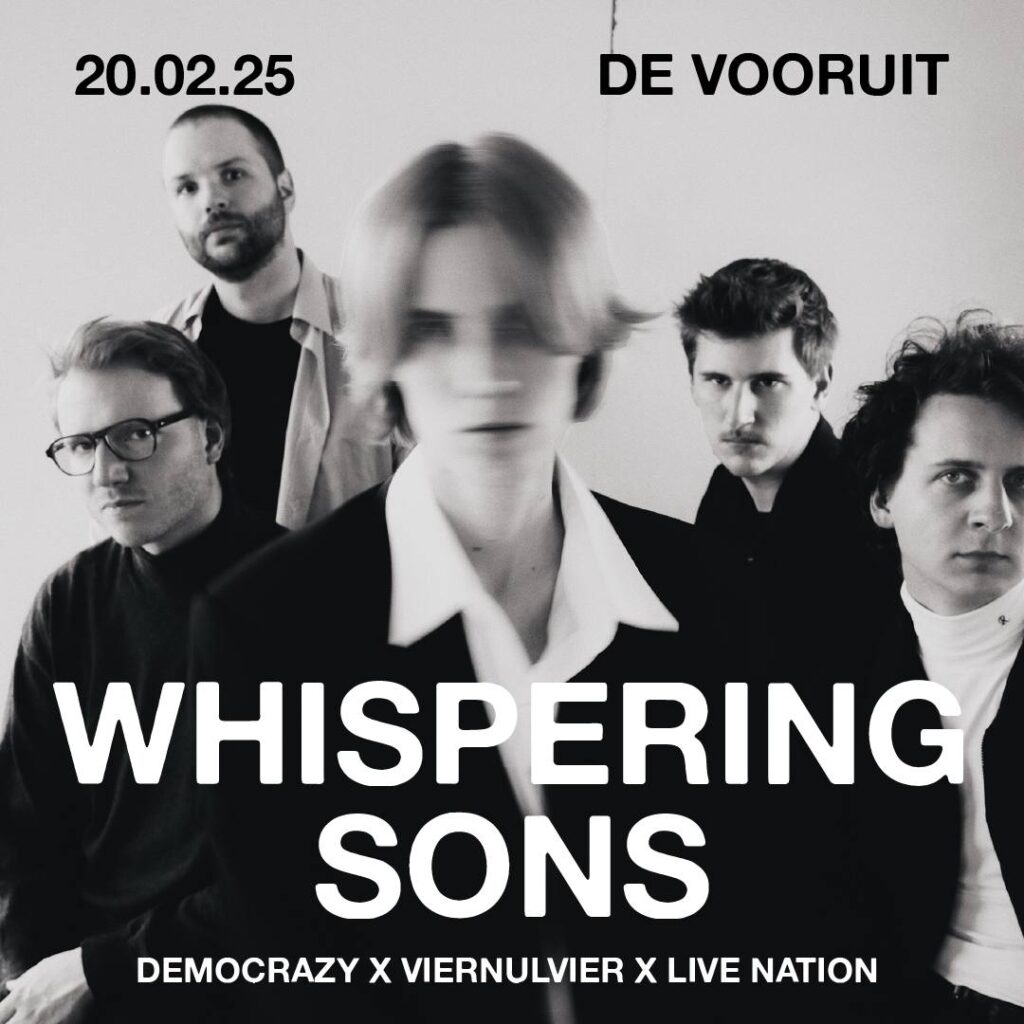 Whispering Sons maakt in februari, na een drukke festivalzomer en een Europese tour nog dit jaar, een stop in De Vooruit in Gent. De Belgische postpunkband releasete eerder dit jaar, na twee jaar noeste arbeid, hun derde album The Great Calm. Het album is deels opgewekter dan de vorige, maar behoudt het rauwe en duistere Whispering Sons DNA, met de zo typerende, diepe stem van Fenne Kuppens.