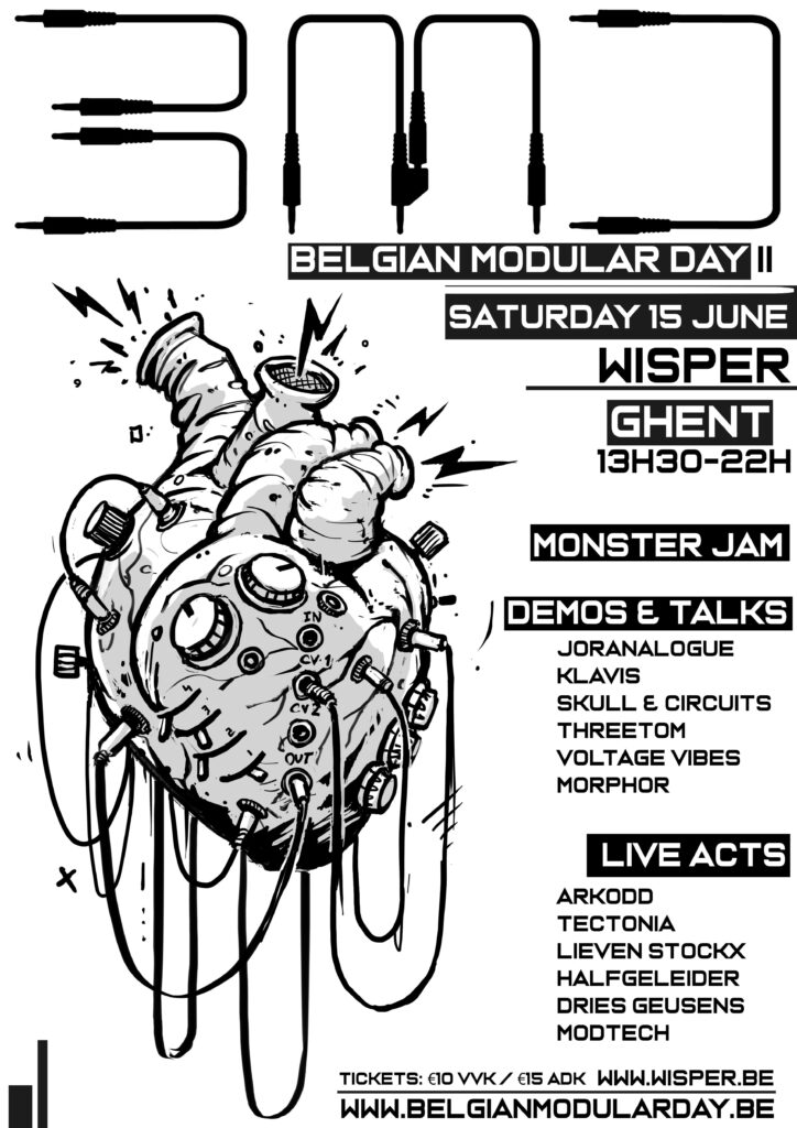 Zaterdag 15 juni, vindt de tweede editie plaats van de Belgian Modular Day. WISPER (Dok-Noord, Gent) wordt vanaf 13.30 uur even het episch centrum van alles en iedereen die met modulaire synths te maken heeft. Modulaire synths zijn de hedendaagse versies van de originele synthesizers uit de jaren 60 en 70, met aparte modules, heel veel knoppen en vooral veel kabels om alles met elkaar te verbinden (patchen).
