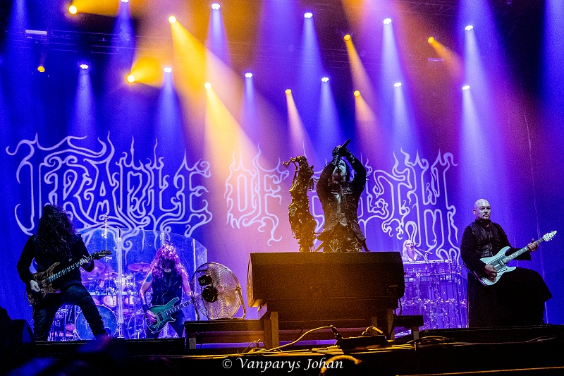 De avond was nog niet ten einde. Eerst bracht Cradle of Filth nog hun show in de Swamp. Begin jaren 90 kwam een jonge man uit Suffolk op met een nieuwe aanpak voor Scandinavische black metal. Dani Filth verrijkte de muziek met gothic keyboards en bestrooide het met NWOBHM-riffs. Met occulte teksten en een vampierimago was de band Cradle of Filth geboren. Het ideale slaapmutsje voor alle death metal-fans die van een filmisch vampierenoptreden houden.