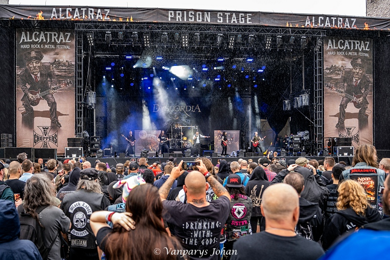 Dyscordia, voor de derde keer aanwezig op Alcatraz, had dit jaar de eer om het festival te openen op het hoofdpodium. Met hun nieuwste album, The Road to Oblivion (2024), en een volledig nieuwe drummer (Chevy Mahieu), betraden zij de PRISON.