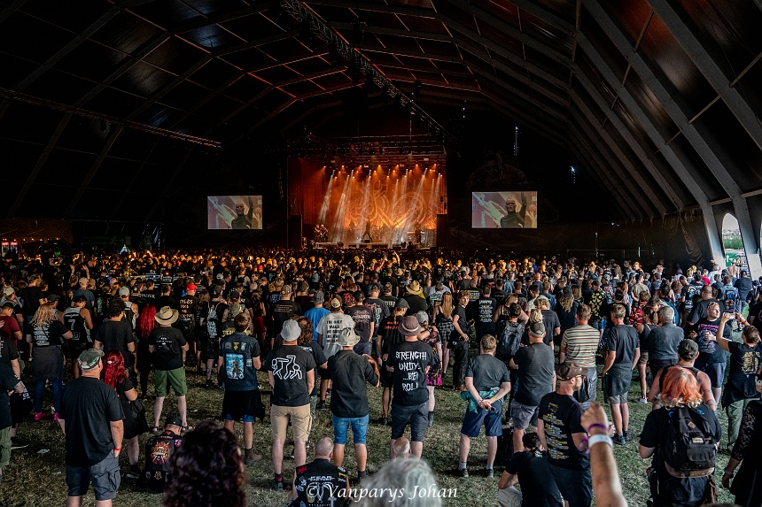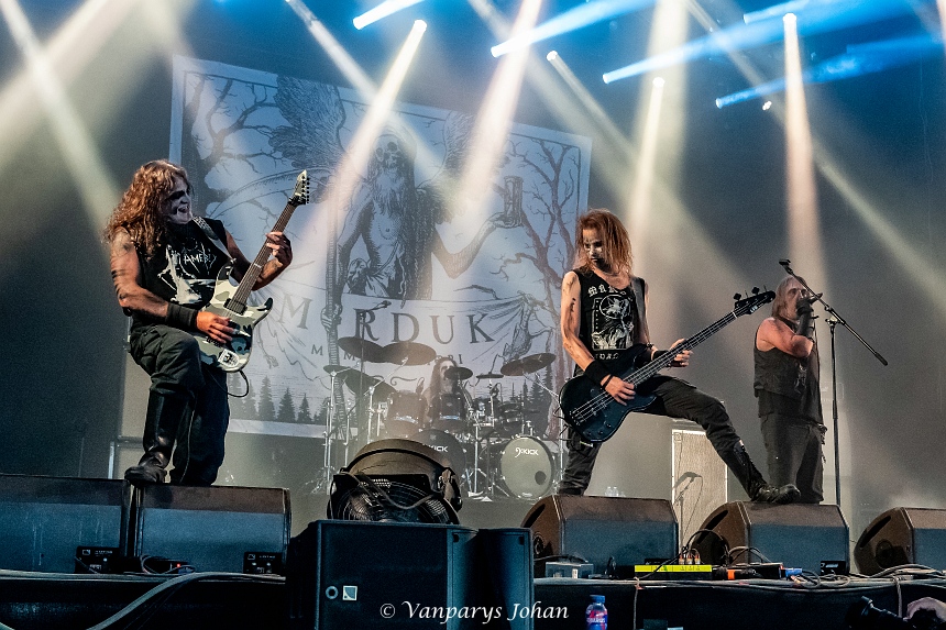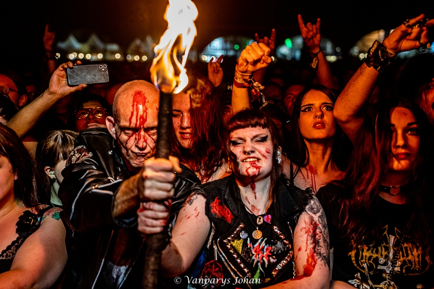 De Zweedse necroblackmetalband Watain heeft een diep donkere reputatie en loste deze volledig in op het podium van de Swamp. Een brandend podium gedecoreerd met kruisen en stinkend naar zwaveldampen was het decor voor één uur lang van het zwartste metaal. Nog voor de derde song ten einde was, waren al twee brandende fakkels in het publiek gegooid en zaten de zwerm fotografen en de eerste rijen toeschouwers onder een lavastroom van bloed. Hun jongste album The Agony & Ecstasy of Watain (2022) zorgt ervoor dat je vastgenageld staat voor het podium, er is geen weg terug.