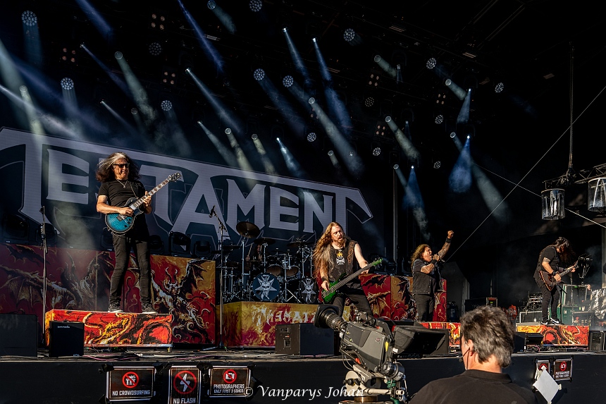 Testament wordt beschouwd als de ongekroonde koning van de thrash. Reeds voor de vijfde keer kwamen ze dit bewijzen op Alcatraz. Al meer dan 40 jaar zetten de boys uit San Francisco elke weide die ze aandoen in vuur en vlam. Ook in Kortrijk, onder een stralende zon, lukte dat zonder problemen.