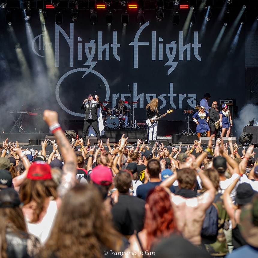 The Night Flight Orchestra is een Zweeds orkest onder leiding van frontman Bjorn Strid (Soilwork) en bassist Sharlee D’Angelo (Arch Enemy) die wel eens de ABBA van de hardrock genoemd wordt. Met een stijlvol jaren 70-imago weten ze telkens weer een wervelende show boordevol good old rock songs op poten te zetten. Is dit metal? Zeker niet, maar wel verrassende feelgood muziek in een hardrock jasje.
