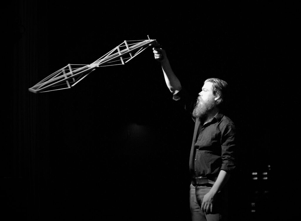 Bruggeling Christophe Ywaska mocht met zijn Teleferick project het festival openen. De radiomaker bij Villa Bota (Klankschap) bracht een elektronische collage van krakend ruisende melodieën, veldopnames en samples. De start van de experimentele set was wat hoekig maar na enkele The Caretaker-achtige pulsen kwam de muzikant goed op dreef. Het avontuurlijke klanklandschap werd vergezeld door de opmerkelijke mix van achtergrondbeelden die de sfeer van de gelaagde muziek perfect aanvulden. Ywaska improviseerde met een keyboard enkele effecten en fragmenten bij de geproduceerde elektronische signalen. We herkenden ook een mysterieus gesproken fragment uit Dijkjutter, een samenwerking van Teleferick met de Friese dichter Jan Kleefstra dat in de complexe set te horen was. Ywaska werd op het einde van zijn performance op de meet verslagen door zijn waanzinnig mooie achtergrondbeelden. De bekende ‘kegel’ verscheen op de achtergrond nog voor de muziek eindigde. Maar ja we kunnen hem dat alleen maar vergeven. Ywaska had de dag ervoor een ongeval gehad en kwam toch volhardend met een hersenschudding en verse rits onder de pet zijn passie delen.