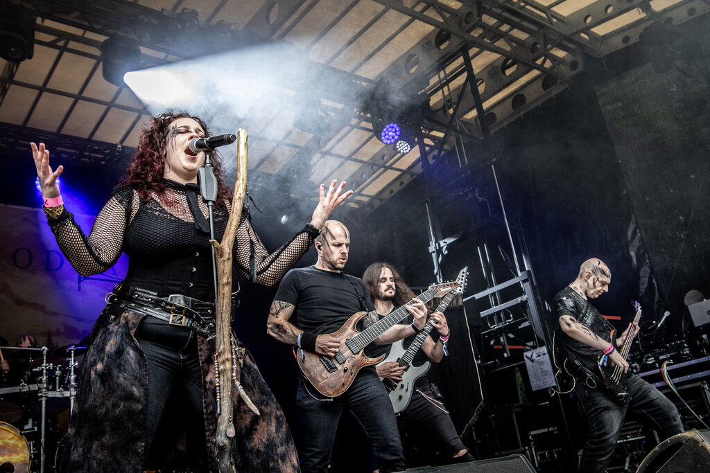 Voor een band als Cathubodua, die beter tot zijn recht komt in een donkere omgeving, was het moeilijk om in de namiddag bij een zacht brandend zonnetje dat door de wolken scheen, op te treden. Toch slaagde de band er met brio in een duistere walm over onze hoofden te doen neerdalen, binnen een folkloristische omkadering, waardoor je die donkere klauwen die je strot dichtknijpen daadwerkelijk voelde. Sara’s vocale inbreng deed ons telkens naar adem happen, maar we waren ook nu weer diep onder de indruk van het betoverende vioolspel. Het zorgde voor een prikkelende totaalbeleving. Het was echter vooral dat totaalpakket van milde botsingen tussen donker, licht en pure folklore dat ervoor zorgde dat Cathubodua ons ook bij klaarlichte dag onder kon dompelen in donkere gedachten.