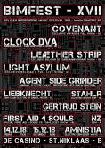 Op de tweede BIM-fest-dag nam het Duitse elektro-/EBM-duo Amnistia als eerste het podium in. Voor ons waren deze heren nog onbekend, maar wat een geslaagde opener! Het was hun eerste show in België en we kregen heel wat van hun nieuwe tracks te horen. Ze labelen hun werk als bodywave en dat is best een accurate beschrijving voor de zwaar doorklinkende heartbeatbassen en drummachine, overgoten met zwevende synths. Het typische Duitse geluid en kwaliteit die we binnen het genre gewend zijn. Een zeer sterke, ruwe stem die strak klinkt zorgt er voor dat nummers zoals Money,Abbys en Black Halo meteen in onze playlist terechtkomen.