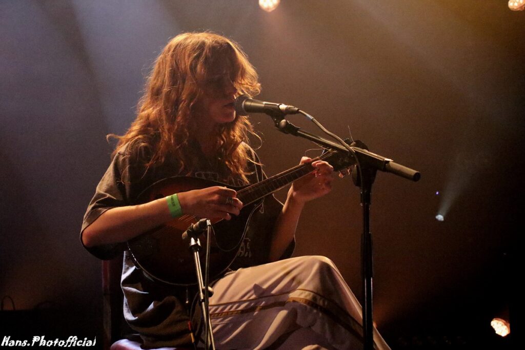 We werden nog meer verrast toen plots Laure op het podium kwam vanuit het niets, voorzien van een 5-snarige bas die een spaarzame groovy touch gaf aan de knappe songs van de Parisienne. Het laatste deel – met sfeervolle belichting – was nog het strafst van al toen de songs Natasha en Delphine de set mochten afsluiten. Op plaat is Anna sfeervol maar op een podium ontpopt ze zich tot een veelzijdige boeiende zangeres en liedjesmaker. Ze was heel vaak hoofdbewegingen aan het maken alsof ze wilde headbangen op stilte met haar lange haren. Hierover zei ze aan het eind: “I just have a terrible pain in the neck and besides that I am just a big drama queen”. Wij hebben het liever over hoe ze ons meenam op haar hypnotiserende trip. Die mag een heel verre bestemming hebben, meegaan doen we sowieso.