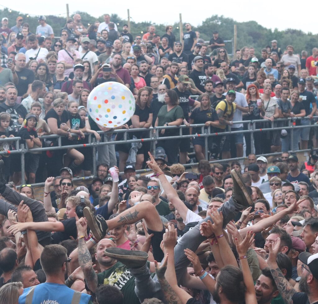 De tijdsblokken waren krap, dus veel bands moesten nummers schrappen van hun setlists. Kort en krachtig dachten we dus maar. Het zou een punkfilosofie kunnen zijn. Er kwamen ook dit jaar weer tal van prille groepen die aan een opmars bezig zijn. Zo konden we op het rustige Lake Stage Tusky en Slaughterhouse ontdekken. Die eerste heeft al wat naam gemaakt door onophoudelijk te touren in de lage landen. Ondanks een voorzichtig begin hebben ze met hun furieuze punkrock weer enkele nieuwe fans gescoord en dat gold zeker voor de basgitarist die op menig bijval kon rekenen bij de vrouwen. Slaughterhouse daarentegen maakte indruk in de andere richting, Meriel O’Connell had het heel warm en verblijdde de vijver, gehuld in een kort strak rose kleed met een slip-gate. Afgelopen jaren hebben ze mogen touren met oa. Amyl & The Sniffers en Dead Boys, en nu stonden ze met een eerste Europese tour aan De Nete. Misschien niet hun beste show vandaag, entertainend was het wel! Heel benieuwd waar hun punk- en deathrocksound in de toekomst naartoe zal leiden.