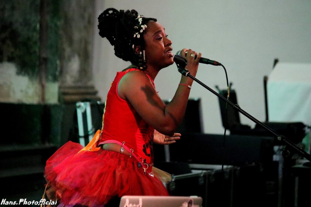 Hiervan moesten we toch even bekomen en geen betere plek dan de Rijkeklarenkerk natuurlijk. We verkozen Niecy Blues in de kerk boven Gordan in de club en we hoorden een buitengewoon straffe zangeres aan het werk die lovende woorden overhad voor haar podium. Dat was natuurlijk gewoon de kerkvloer, maar wie wil daar niet spelen? Janise ‘Niecy’ Robinson bracht vorig jaar haar plaat Exit Simulation uit onder de naam Niecy Blues en we hoorden de beste kerkstem aan het werk sinds Anna Von Hausswolff, bijna anderhalf jaar geleden. De zangeres uit Charleston, South Carolina, zag er uit als een kleurrijke vogel in haar tof hoepeljurkje dat ze overigens ook gebruikte om noise-effecten door haar microfoon te jagen.