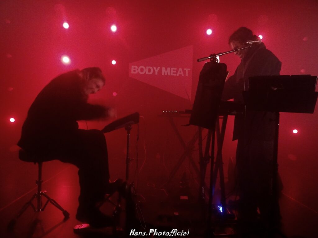 Opnieuw Amerikanen aan zet in de Club met Body Meat van Christopher Taylor. Elke song kende wel een duizelingwekkende mix van r&b, trap en industrial. Pitchfork en andere bladen zijn fan van de hyperspeed rave sound die vooral door de drummer naar grote hoogtes wordt gestuwd. Body Meat opende in een degoutante rookwalm van de totaal overbodige rookmachine met een spervuur van drumpad-salvo’s om dan met Mobyiaanse rustgevende synths een totaal andere en behoorlijk onverwachte koers te varen. Drie minuten later kregen we techno met drumpad en met autotune verminkte zang. Het swingde wel maar desondanks hielden beide heren hun winterse jas aan.