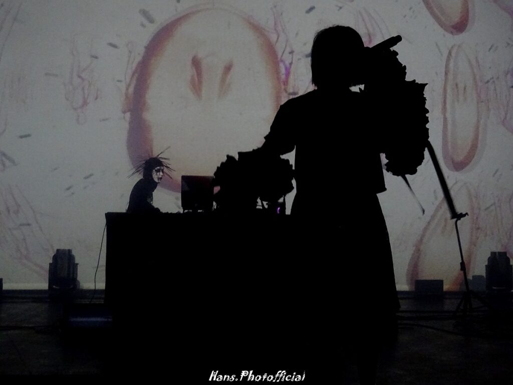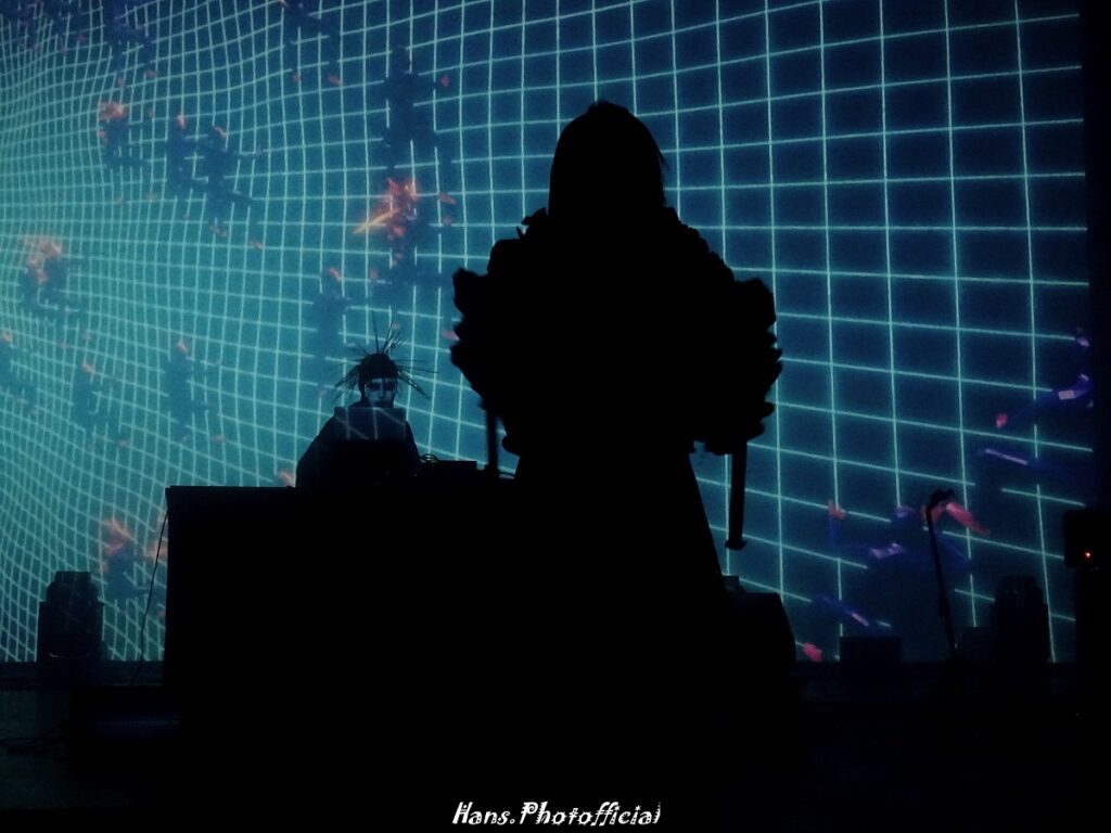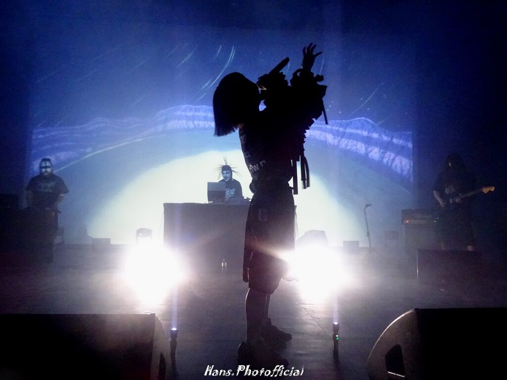 De bandleden eigenen zichzelf overigens ook de namen toe van een paar legendarische blackmetalbands als Darkthrone, Mayhem, Emperor en Xasthur. Op hun recente album Death Rave kregen ze Attila Csihar en Kaelan Mikla over de vloer. Ze kwamen in ‘corpse paint’ het podium op en begonnen er aan met een indrukwekkende reeks science fiction visuals. Ze lijken bovendien bewust op Shinigami (goden van de dood) uit de manga Death Note. De show – want zo mag dat zeker betiteld worden – was een industrial horroshow uit de anime wereld met schreeuwen en poses die akelige ruimtewezens opriepen. Muzikaal vonden we er eigenlijk niets aan, maar we zijn wel blij dit theaterstuk te hebben meegemaakt.
