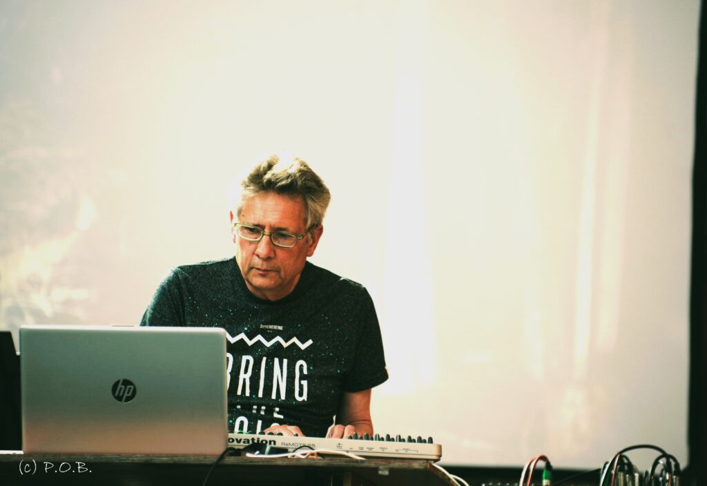 Niet alleen Koen Buytaert draaide een dubbele shift, ook Daniel B. liet zich voor een derde maal horen en zien op het evenement, maar we hadden honger en dorst dus moesten we de innerlijke mens versterken. Daniel.B. speelt graag verstoppertje op de bühne maar staat dus al genoeg op de foto’s. We hoorden na het nuttigen van de roze (lokale) limonade en het lekkere ‘smulsel’ dat men een korte ambientset in de oren kreeg.