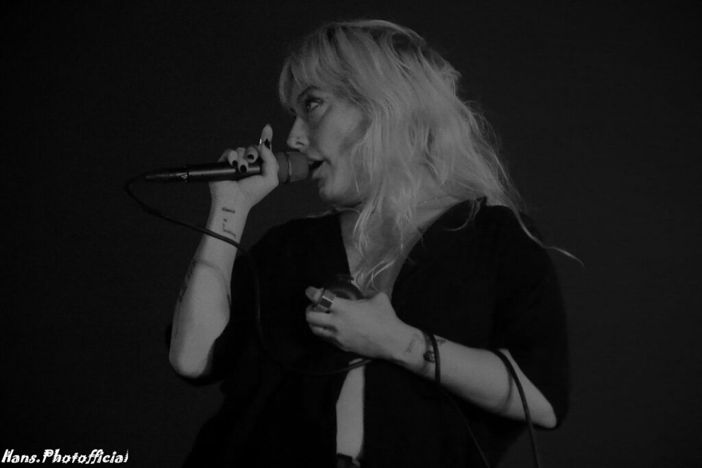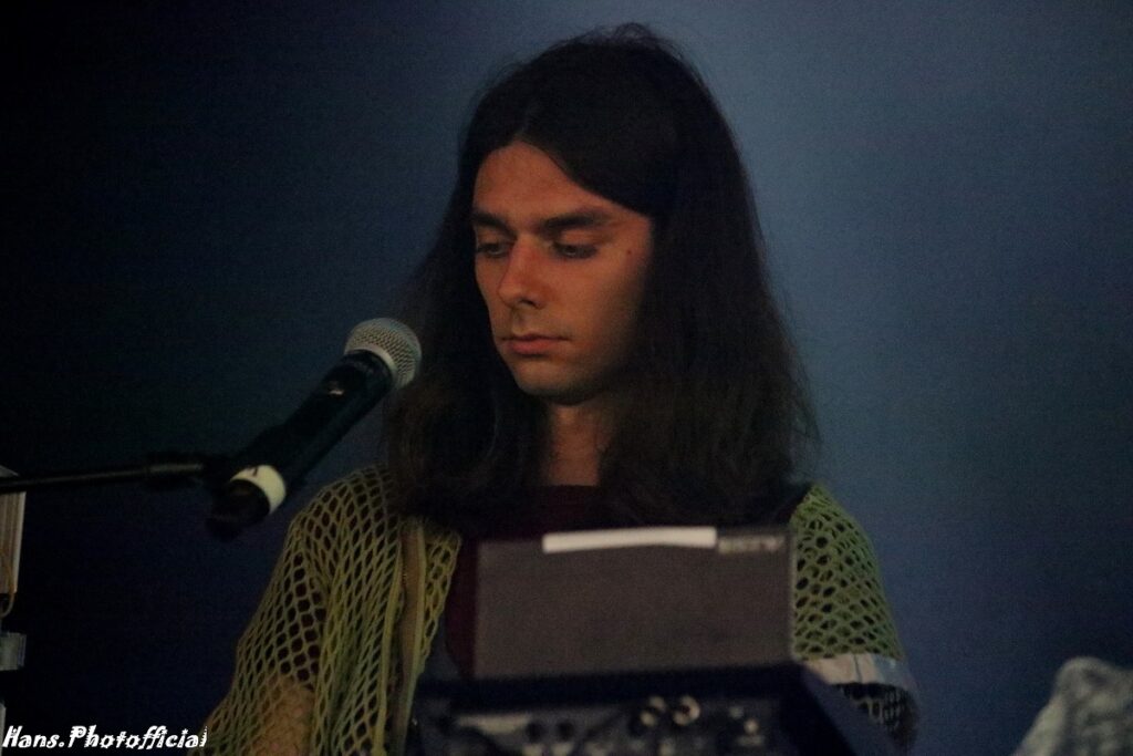 Over ontdekkingen gesproken, we waren aanvankelijk sceptisch over de complexe moeilijke start in Le Garage van het Zwitserse trio met de intrigerende naam Omni Selassi. De podiumopstelling was al verrassend met twee drummers, Lukas Rutzen (ook synths) en Mirko Schwab (ook elektroharp). Centraal nam gitariste en pianiste Rea Dubach de honneurs waar. Zij richtte de band op in 2019. Ze komen uit Biel, Bern en Leipzig.