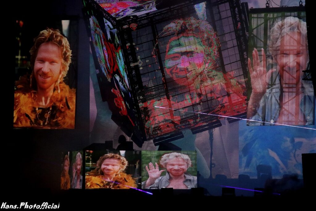 Halverwege de set kwam zijn angstaanjagend zelfbeeld uit Come To Daddy op hilarische wijze in de visuals terug. Hij projecteerde een resem Belgische iconen op het scherm, vervormd tot zijn nineties-alter ego, met de grimas er gratis bovenop. Zo passeerden onder meer Adamo, Zwangere Guy, Angèle, Eddy Merckx, Evenepoel, K3, Helmut Lotti, Clouseau en De Rode Duivels de revue. Nog maar eens het bewijs dat hij elk optreden iets totaal anders brengt.