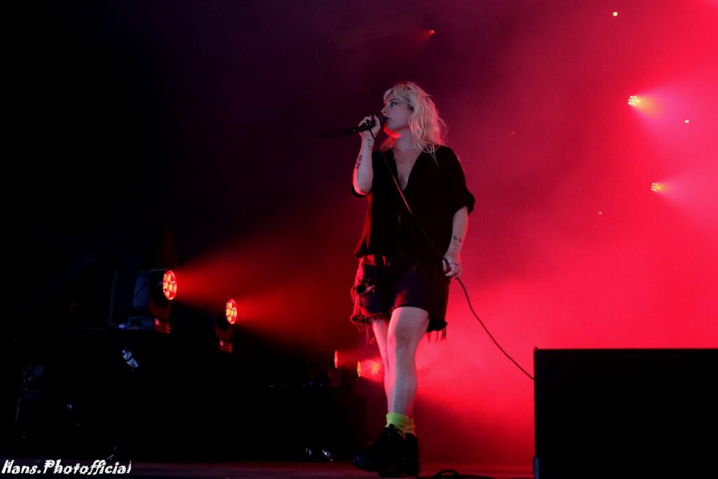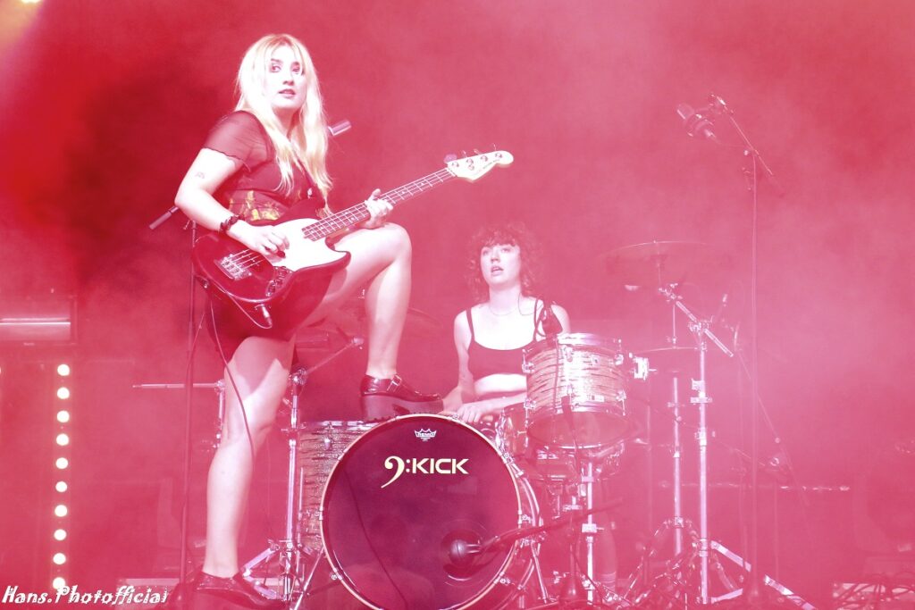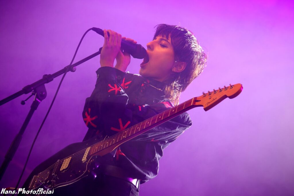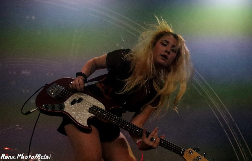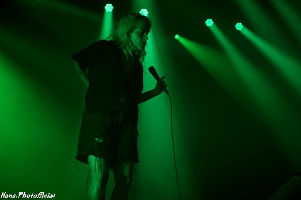 Het publiek at uit haar hand en amuseerde zich rot. Uitgelaten gezichten, een moshende menigte en alle armen en handen de lucht in! Rock-’n-roll rules, bitches! Phoebe moest lachen toen we haar na het optreden de titel ‘female Iggy’ toekende. Bij Lambrini Girls slaat het vuur de ene keer in de publiekspan, de andere keer braadt de haring niet. Op Dour was het memorabel. Phoebe zei hierover “This was the best festival audience to date”. Lilly lag ondertussen languit te bassen op een versterker in de frontstage. We konden met zijn allen de organisatie wel kussen uit dankbaarheid voor al dit moois.
