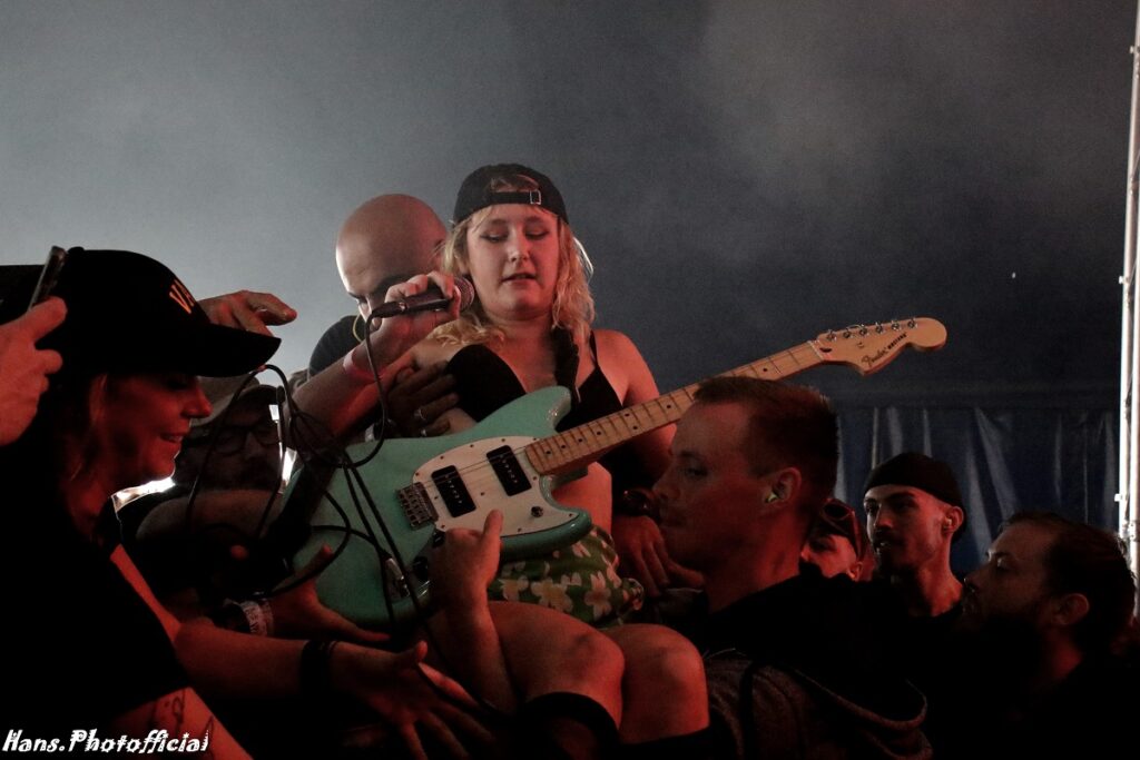 Big Dick Energy en Help Me, I’m Gay lieten de set meteen in de opperste versnelling starten maar de tent kwam pas onder hoogspanning te staan bij Mr Lovebomb. Phoebe dook het publiek in en ging al meteen op de schouders haar boodschap verkondigen.