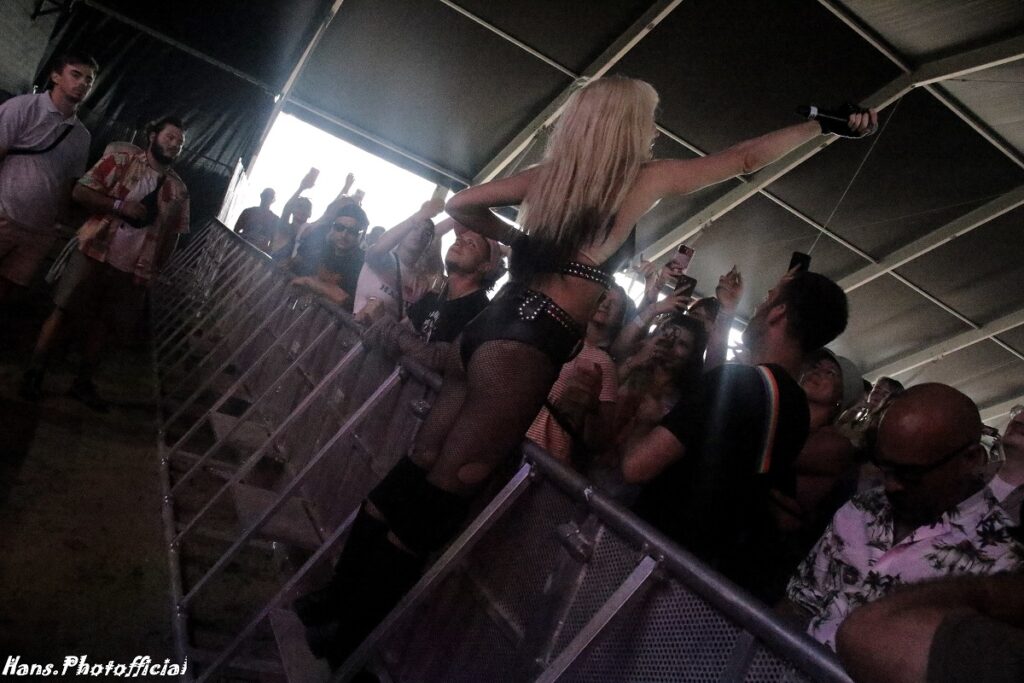 We gingen even bekomen met een heerlijk biertje in de Brasserie en passeerden dan nog een keer langs Le Rockamadour waar Gadji FC Presents Baby Sonja, Lili Camara & DJ Gaga aan hun lange set begonnen waren. Gadji FC is een FLINTA-vriendelijk voetbalteam en een multidisciplinair collectief bestaande uit artiesten en dj’s Leslie, Garance en Sonja, die een rijk muzikaal universum van reggaeton, funk, hyper pop en euro trance combineren… Fun fun fun!