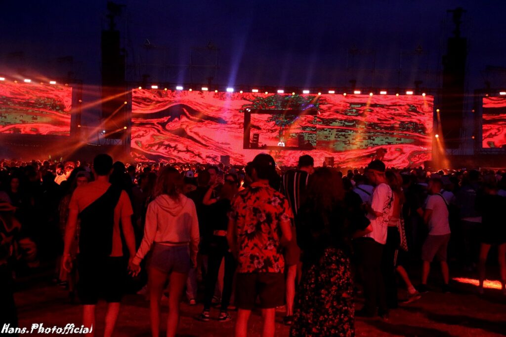 Een volle Last Arena maakte zich dan klaar voor de komst van mainstage headliner Justice, het gerenommeerde Franse elektronica-duo Gaspard Augé en Xavier de Rosnay. Justice incorporeert hun dance/trance met rockinvloeden en won 15 jaar geleden zelfs een Grammy Award voor Electric Feel. Klassiek is hun zoutpilaarstatus op het podium waarbij ze ofwel met de hoofden in dezelfde richting of in elkaars richting achter hun mengpanelen postvatten. Het podium waarop ze zich bevonden was, net als hun nummers, psychedelisch en buitenaards en leek wel te bewegen. In werkelijkheid was het uiteraard een indrukwekkende lasershow en een choreografie van lichtbakken die als het ware op het podium dansten en daardoor een soort ruimteschipvorm suggereerden. De achtergrond leek op een soort elektrohandel met meters tv-schermen. Justice live, dat is ogen dicht of net niet, en dansen en trippen.