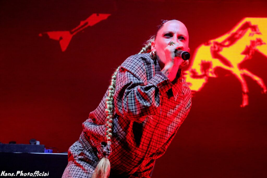Chilla hebben we ook nog even in actie gezien in de Boombox. De rijzende of ondertussen al gerezen ster van de Franse r&b was in springerige doen in een opvallend integraal zwarte outfit. Maréva Ranarivelo, want zo heet ze, zingt over de veerkracht (vandaar al dat springen wellicht) van vrouwen en emancipatie. Ze wist met haar bandleden wel de boombox in een springbox om te toveren waardoor haar missie met verve volbracht was. Live biedt ze sowieso een meerwaarde of is het gewoon omdat haar Mun album uit 2019 minder verfrissend is na al die jaren? Wellicht werd haar ultrahoog energiegehalte verklaard omdat ze zo blij was deze plaat eindelijk eens deftig voor een volle tent te kunnen brengen.