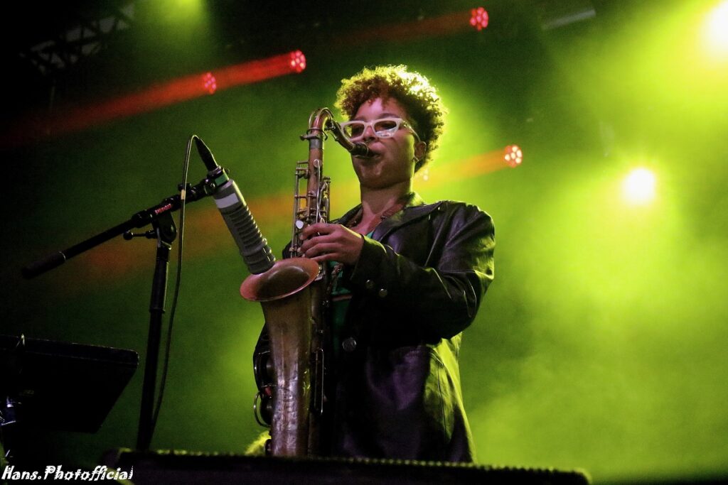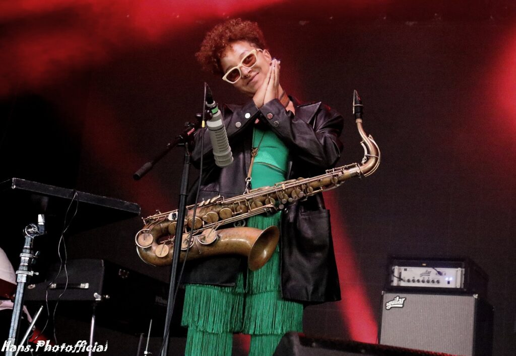 Het strafste concert van deze Dour-dag mochten we beleven in La Petite Maison Dans La Prairie. Saxofonist en componist Nubya Garcia speelde daar een adembenemend en kippenvel genererend concert, ondersteund door fabelachtige muzikanten. Ze is beïnvloed door Sonny Rollins, John Coltrane en Miles Davis, wat als jazzmuzikante natuurlijk “dour” de beugel kan. Haar plaat Source kwam in 2020 uit en stond in ettelijke eindejaarslijstjes. Wij leerden haar vorig jaar kennen bij Jools Holland. Met songs als The Message Continues, Inner Game en Pace werd logischerwijze vooral uit Source geplukt. Garcia was onder de indruk van de enorme opkomst en zei dat dit het grootste festivalpubliek is waarvoor ze ooit heeft gespeeld. “I can feel your energy which gives me energy”. Het is dit soort wisselwerking dat artiesten soms naar een erg hoog niveau tilt. Welnu, dit was bij Nubya Garcia het geval. Ze heeft recent een nummer geschreven dat geïnsprireerd is door UK Garage en het tot op heden titelloze nummer wilde ze absoluut voor ons brengen. Het werd een wilde rollercoaster van dub, latin en grootstedelijke avontuurlijke jazz. Joe Armon-Jones (piano), wat een fenomeen is dat, Daniel Casimir (bas) en Sam Jones (drums) waren in topvorm. De new wave British jazz van grootmeester Shabaka Hutchings, een goeie vriend van Garcia, kan de prinsessenkroon zonder schroom overhandigen aan de 31-jarige Nubya Garcia. INDRUKWEKKEND.