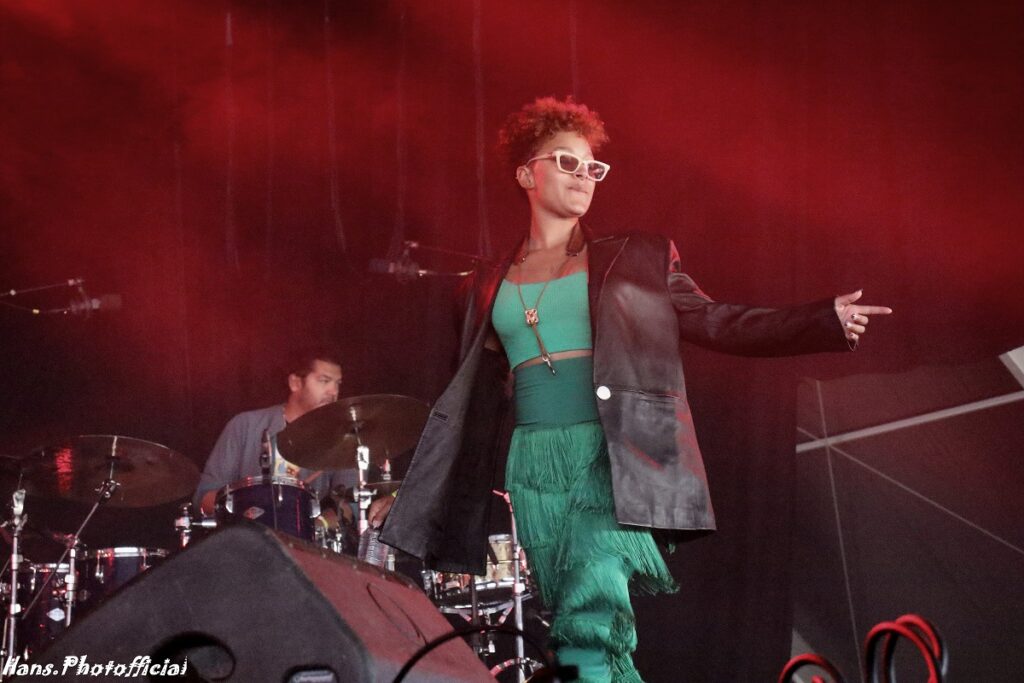 De Zwitserse dj Audrey Danza was heerlijk om te zien in Rockamadour. Fluks dansend zweepte ze het publiek op met haar mix van trance, percussie, italodisco, industrial en techno. Lang geleden dat een dj ons zo wist te bekoren. Wat een plezier om haar van dichtbij aan het werk te horen in deze droomsetting. Met het nodige zand tussen de tenen zetten we onze tocht door Dour verder. We waren nog niet in Le Labo geraakt. K.Zia bracht daar verandering in. Ze liet een tijdlang op zich wachten maar het was het wachten zeker waard. Als dochter van Marie Daulne (Zap Mama) was het podiumvirus bij haar in de fruitpap geïnjecteerd en dat merkte je aan haar ‘flawless’ podiumgedrag. Sensueel dansend, in een heerlijk jaren ’40 aandoende outfit en gezegend met een unieke stem kon ze het publiek makkelijk naar haar kanten hand zetten (je zou het moeten zien maar ze was één van de vele artiesten waarbij gefotografeerd mocht worden doch waarvoor nadien eerst goedkeuring voor publicatie door het management vereist was). De pers kent tijdsdruk, dus geen foto. Sinds de ep Red in 2018 stond ze niet stil en haar muzikaal palet nam vorm aan. We kregen een mix van alternatieve r&b, soul en afrobeat voorgeschoteld, niet mis voor een zomerse vrijdagavond. Haar nieuwe plaat Genesis is een lofzang op de liefde en het bestaan van een plek waar iedereen ongeremd zichzelf kan zijn. Uitstekend performer maar ze laat regeltjes en kapsones wat teveel in de weg staan voor ongebreideld enthousiasme en spelplezier waar haar sound nochtans bol van staat. Vandaag staat ze overigens op Boomtown in Gent op de Gentse Feesten. De 39 graden zullen koortsig aanvoelen.