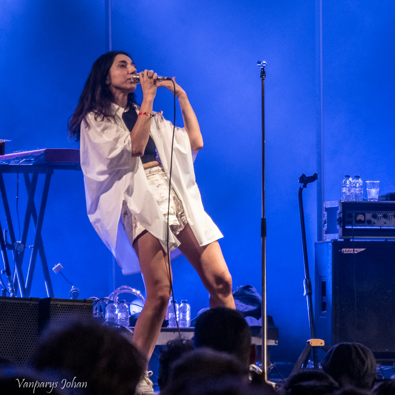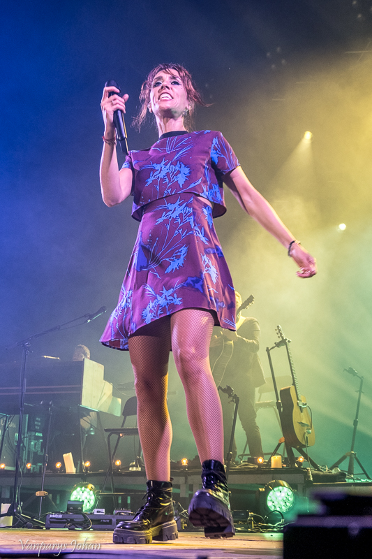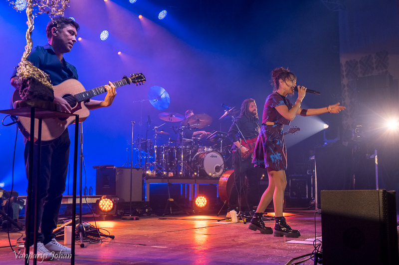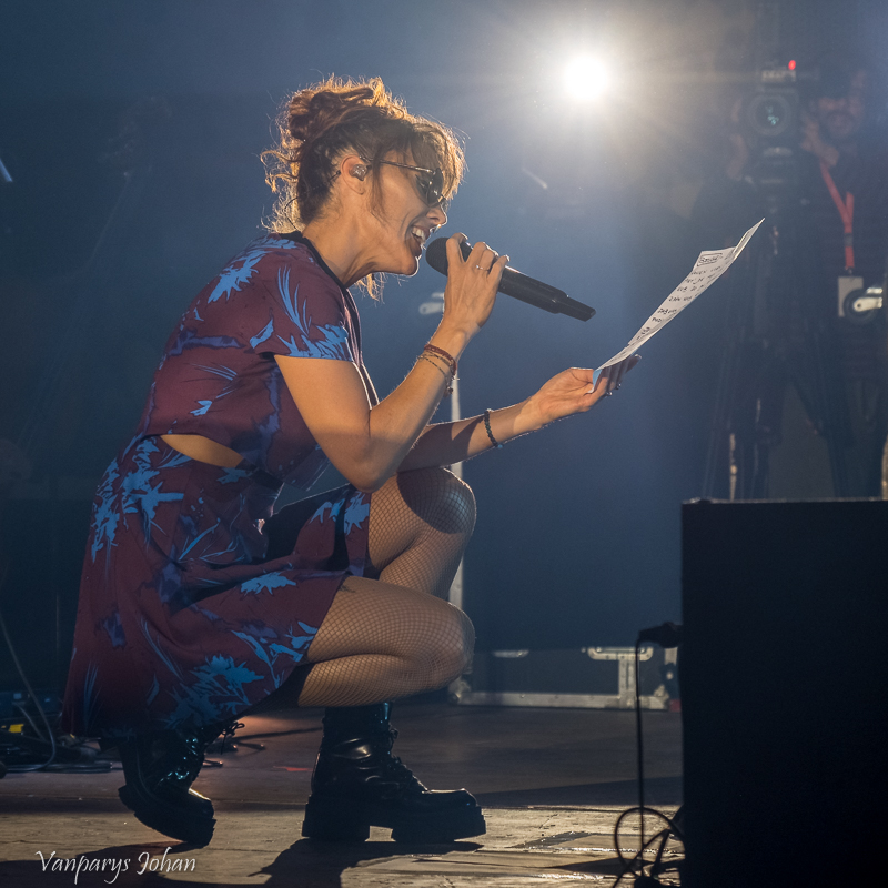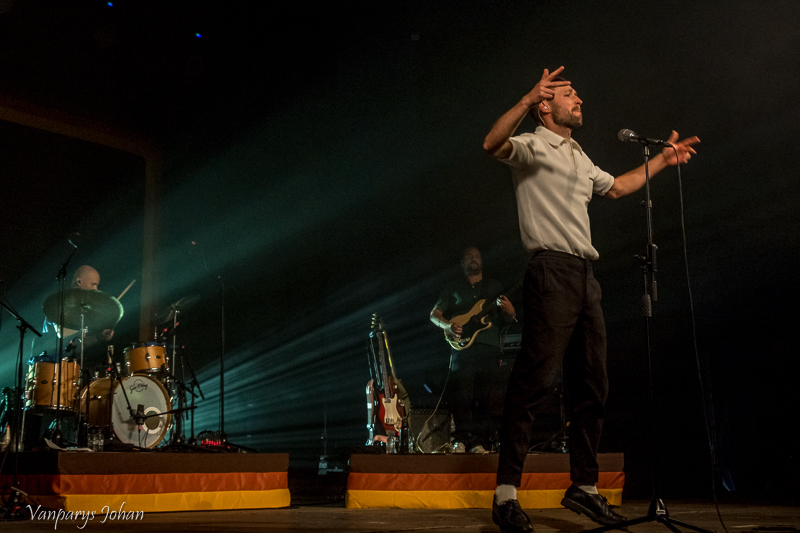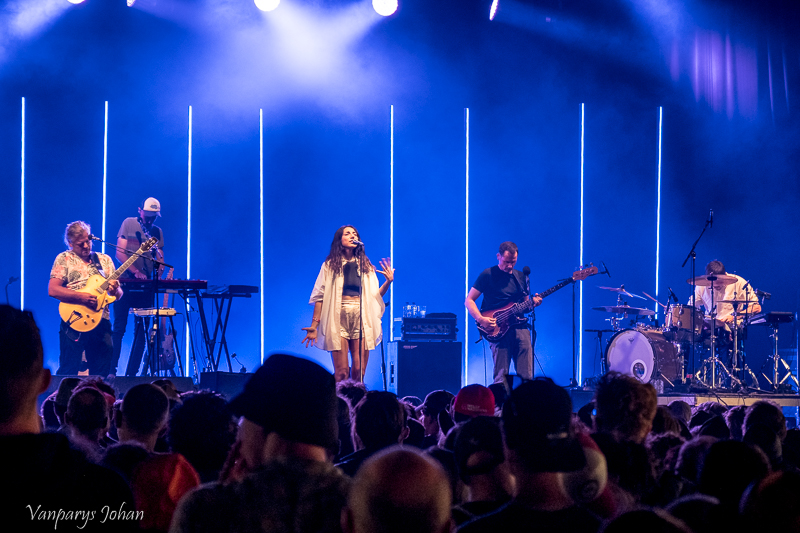 Sylvie Kreusch staat dit jaar haast op elk podium en kon dus ook hier niet ontbreken. Ze kon vorig jaar haar album release niet verzilveren maar dat doet ze dit jaar wel en dat is dubbel en dik verdiend. Voor een optreden zijn er telkens twee vragen: brengt ze twee drummers mee en.. wat zal ze aanhebben? De eerste vraag was gemakkelijk te beantwoorden: twee dus (Falk Schrauwen en Simon Segers). Dat is de versie van de band die we het liefst horen want dat is de aankondiging dat het zwoel gaat worden. De tweede vraag is euh… moeilijker te beantwoorden: ze had een overmaatse bruin/beige onesie aan en lange laarzen en uiteraard een donkere zonnebril. Wat ze aan heeft is echt relevant want Sylvie slaagt er in om haar outfit als een soort wearable canvas te gebruiken in haar choreografie. Niet iedereen was vertrouwd met wat we bedoelen want een dame dicht bij ons hoorden we roepen dat ze dit nog nooit had gezien. Het hoogtepunt van vandaag was ongetwijfeld Walk Walk waarbij ze confetti over haar hoofd gooide. Wie oog had voor detail zal gezien hebben dat de handtas een ‘wearable sculpture’ was van de hand van Stef van Looveren, de kunstenaar die ook de hoes van haar album Montbray heeft ontworpen. Sylvie en Stef zijn vrienden en laten geen kans onbenut om elkaars werk in de kijker te zetten. Wie Sylvie nog niet bezig zag, moet zeker eens gaan kijken want het is de moeite, en let vooral op die handtas !