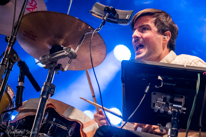 Op de mainstage was het tijd voor Intergalactic Lovers. Deze band was even verdwenen en nu staan ze er terug met in de hand een nieuwe plaat Liquid Love. We trokken er niet met heel hoge verwachtingen naartoe, maar daar hadden we ons even mispakt. Het is zo’n band waarvan je een paar nummers hoort en denkt: “Hey dat ken ik, en dat ook, en die oh ja die ook”… en voor je het weet ben je van achter in de tent opgeschoven tot op de voorste rijen en dans je mee op “Run Run Run as fast as you can” (Shewolf)… Het was een blij weerzien!