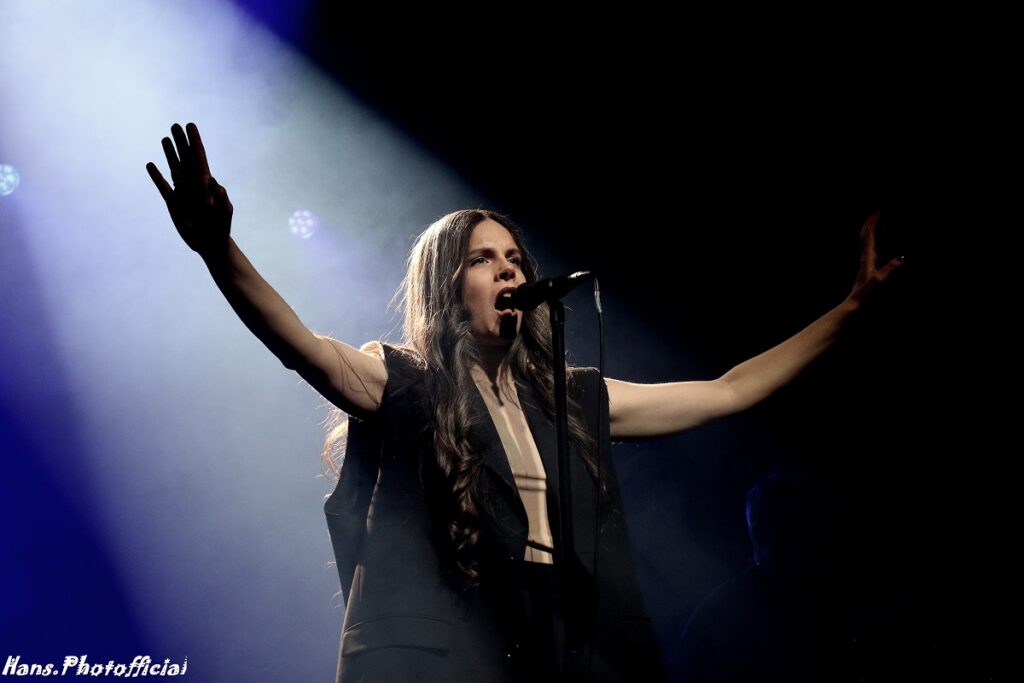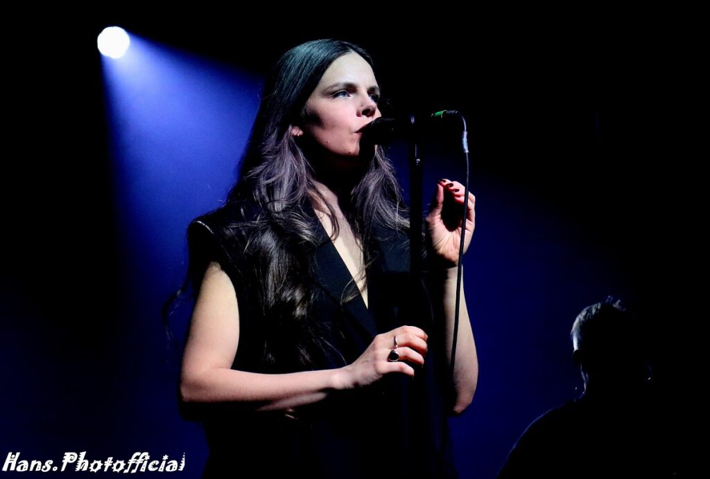 De breekbare teksten bonzen op roffelende, rammelend haakse beats die soms als mystieke sprookjes klinken, maar afwisselen met verdoemd duistere synthmetalstukken. De zang door Eva klinkt warm, ijlsensueel en perfectionistisch correct. Dat gonst vaak knallend tegen de bas in bijvoorbeeld Strawberry Supper. Moeilijk vergelijkbaar met andere bands, hoewel namen als Whispering Sons of Portishead heel even door ons hoofd gingen… De elektronische drum slaat tegen alles in, de gitarist bespeelt zijn instrument met een strijkstok, er zijn twinkelende elektronische details en Milena Eva ‘danst’ in gebroken, starre, maar krachtig prachtige choreografische bewegingen.