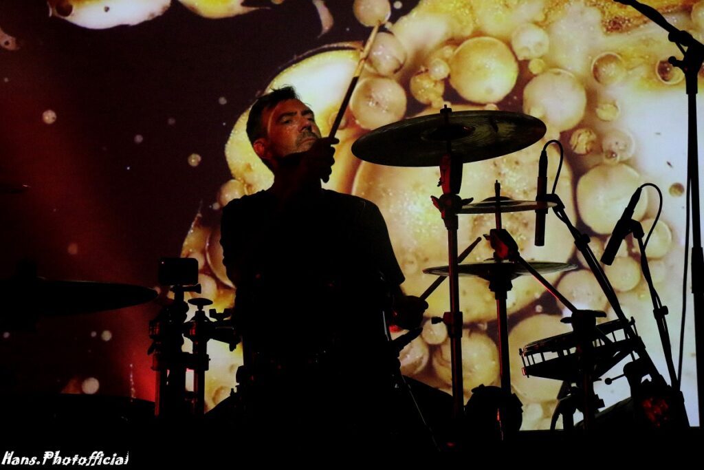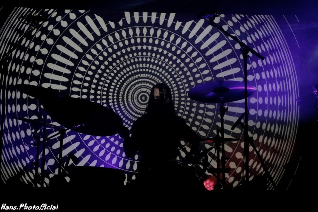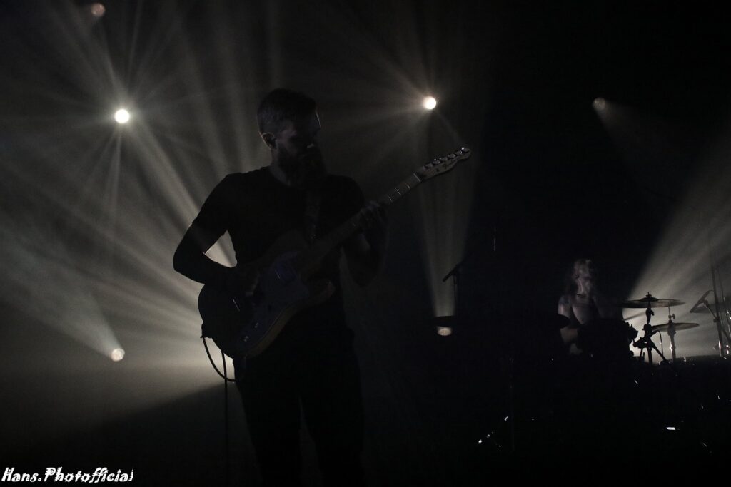 Het mantrisch, melodisch klinkend gezang van achter de drum van zanger Jamie Cobic – die dus geen frontman maar een backman is – verzwelgt ons meteen in het geluid die de Domzaal vult. Mantrisch gezang dus. En af en toe minder mantrische screams, die hij zonder verpinken – alsof het hem geen enkele moeite kost – breng. En ook dié klinken alles ommhullend, verstikkend omhelzend. En soms ook ijzig. Heel af en toe. Want Cobic blijkt zelfs fluisterend te kunnen schreeuwen. En dat terwijl hij de tracks voorziet van zware drumlijnen met overvloedig gebruikte cimbalen.