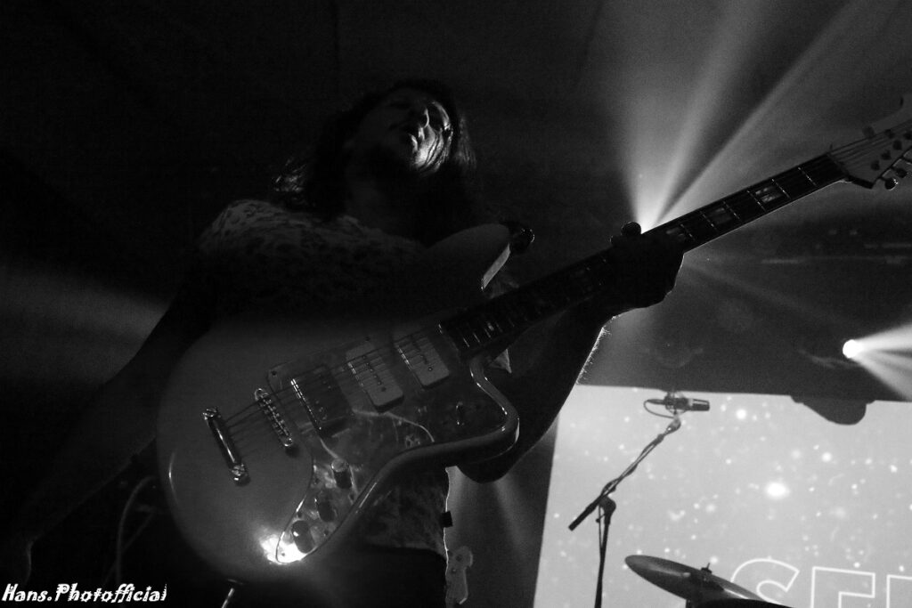 De gitaarintro’s wisten de al vroeg volgelopen zaal keer op keer in doodse stilte te hullen. Melodieuze, intieme gitaarlijnen, terwijl Freek van Rooyen de riffs er ook stevig wist door te rammen. De nummers worden vanuit het niets, fluisterend opgebouwd naar groots klinkende tracks, met ronkend, grommende baslijnen van Ritsaart Vetter. Sober, eenvoudige gitaaroutro’s maken elk nummer ‘af’.