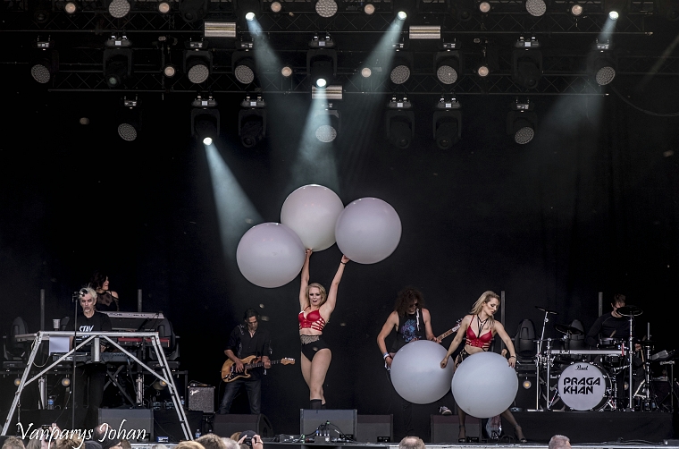 Om 16h45 kregen de bezoekers Praga Khan voorgeschoteld. Een verwenbeurt voor oog en oor. Maurice, zijn muzikanten en de elegante danseressen zetten in Ieper hun mooiste beentje voor, muzikaal versterkt door de typische Praga Khan sound.