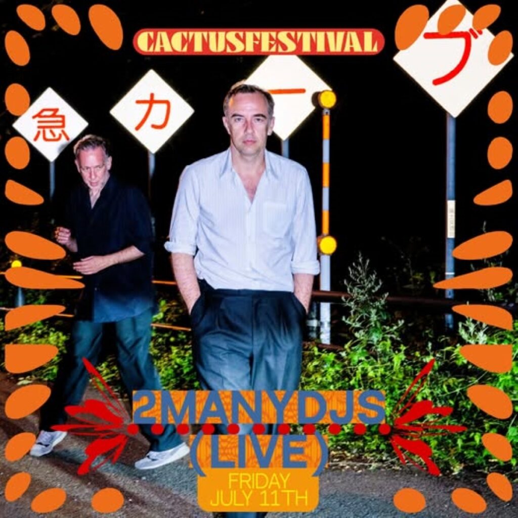 Met 2manydjs (live) komen de gebroeders Dewaele voor het eerst terug naar het Minnewaterpark, sinds Soulwax er in 1999 optrad als vervanger van Morphine. Op het Cactusfestival speelt 2manydjs hun unieke Under the Covers-set, waarbij ze ook de hoezen van de platen die ze draaien live mixen. 2manydjs sluiten de vrijdag van Cactusfestival af.