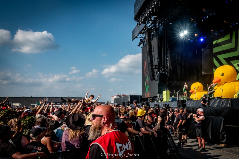 Wie dacht dat het nog rustig op gang zou komen, werd ruw gewekt door Municipal Waste. De Amerikanen openden met elf spijkerharde tracks vol party thrash, humor en chaos. Frontman Tony Foresta liet het publiek geen moment los, met snedige one-liners en dollende interacties. De moshpits draaiden al op volle toeren, en de toon voor de rest van de dag was gezet.