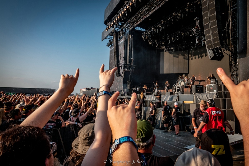 De zon brandde genadeloos op de Kempense weiden, maar niets kon de stroom aan metalheads tegenhouden. Al vroeg verzamelden zich duizenden fans aan de poorten van Graspop Metal Meeting, klaar voor een dag vol riffs, roffels en rauwe energie. Om stipt 11 uur gingen de hekken open. Binnen de kortste keren kleurde het terrein zwart van de T-shirts, leer, spikes en opwinding.