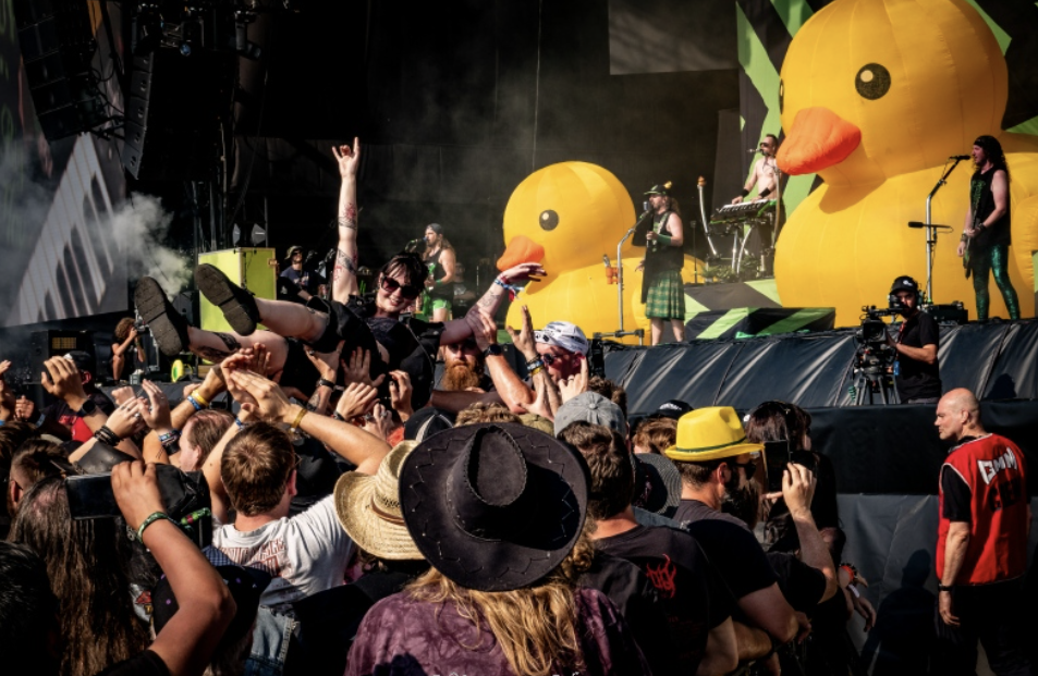 Alestorm, de Schotse piratenkoningen van de metal meerden donderdag voor de zesde keer sinds 2008 aan op Graspop. Gehuld in vertrouwde chaos en vergezeld van hun iconische opblaasbare badeend – intussen even onmisbaar als hun meebrulrefreinen – hesen ze de zeilen met volle overtuiging.