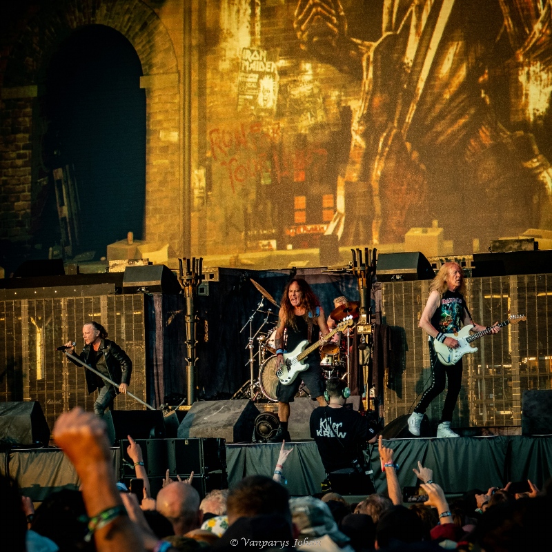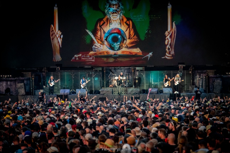 Iron Maiden sloot donderdag de South Stage af met hun Run For Your Lives Tour, ter ere van hun 50-jarig bestaan. De twee uur durende jubileumshow werd op voorhand geprezen als hun “meest spectaculaire ooit” – en dat was het grotendeels ook. De setlist dook diep in hun eerste negen albums, goed voor een nostalgische reis door vier decennia metalgeschiedenis. Voor de fans: een feest der herkenning, met publiekslievelingen en zeldzamere parels.