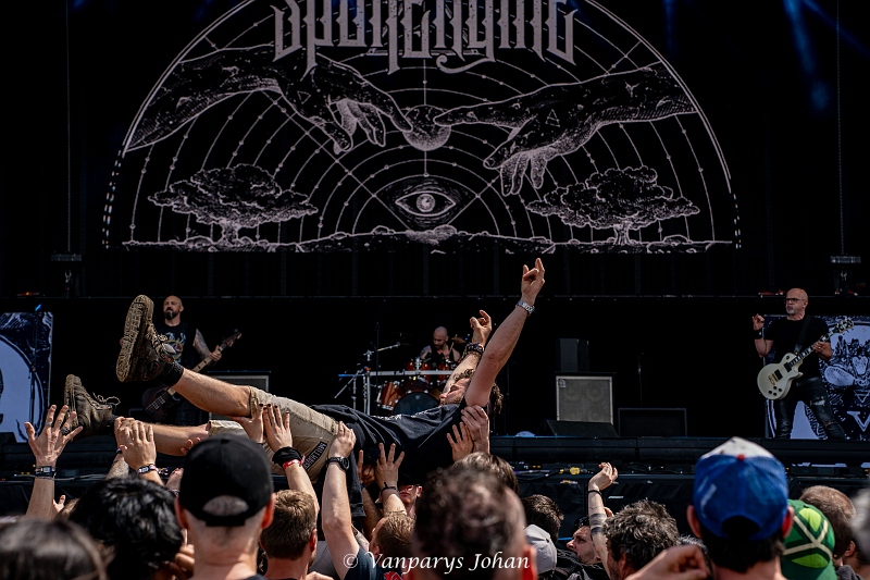 Precies om 12:00 uur begon de derde dag van Graspop Metal Meeting met een reünieconcert van Spoil Engine. Dit jaar viert de band zijn 20-jarig bestaan, wat ze vierden met een optreden in de originele bezetting inclusief zanger Niek Tournois.
