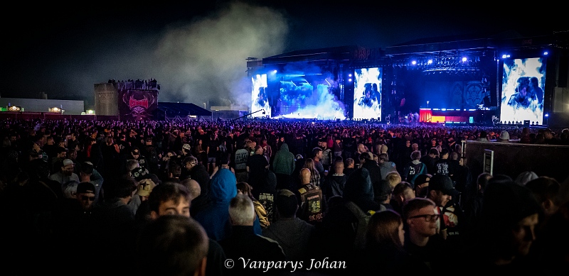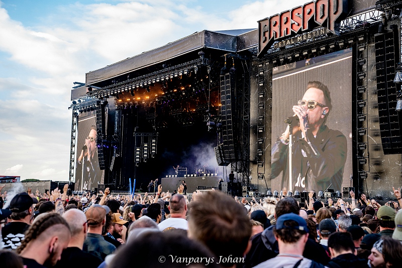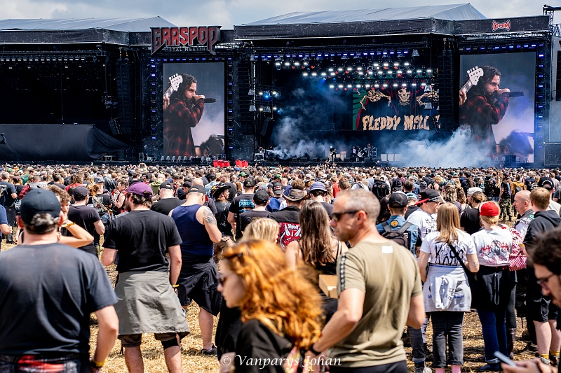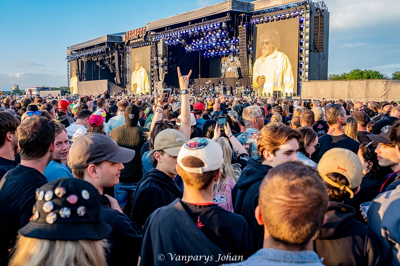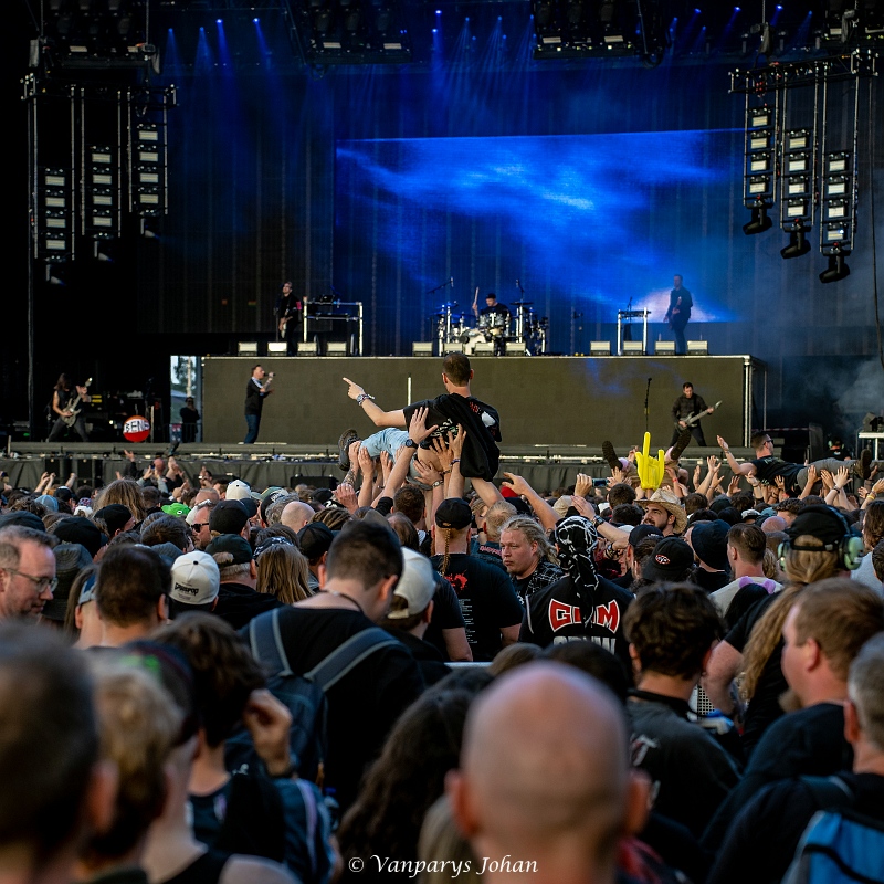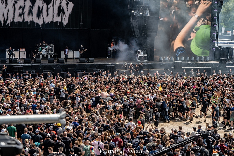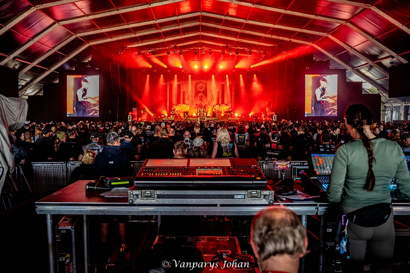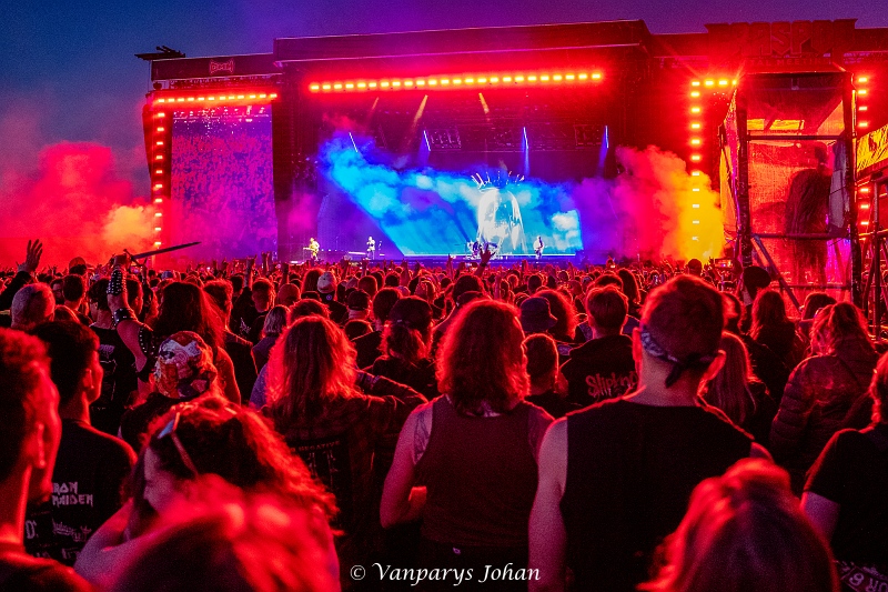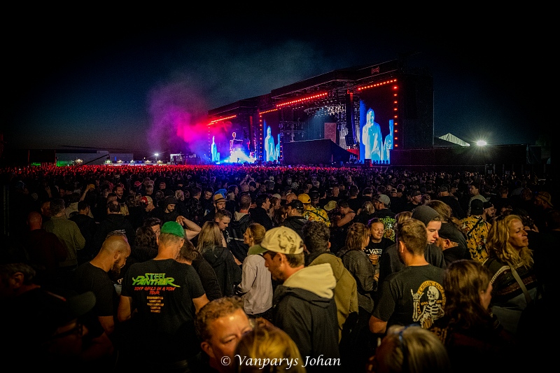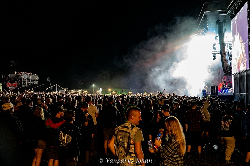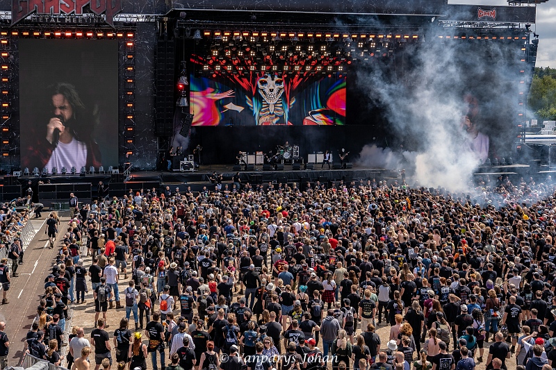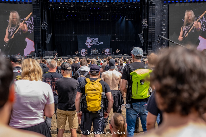 We wrongen ons door de menigte, die waarschijnlijk 40.000 mensen bereikte, en begaven ons terug naar de North Stage voor Flotsam & Jetsam. Sinds de release van Blood In The Water staan ze weer aan de top van de thrashmetalscene. Veertig jaar geleden werden ze in één adem genoemd met Metallica, Megadeth, Slayer en Venom. Door omstandigheden waren ze een tijdje van die top afgedwaald, maar nu zijn ze weer helemaal terug.