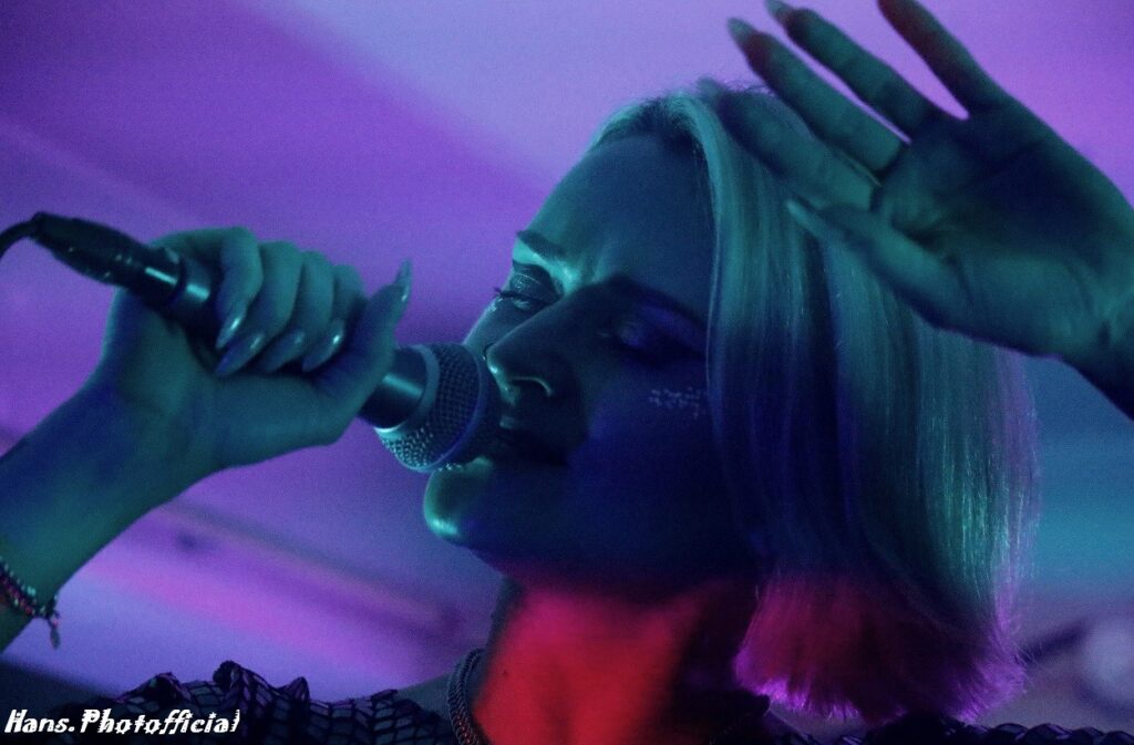 We gingen de trap weer op want daar wachtte Madame Melancholia op ons. Dit was haar allereerste optreden onder deze naam want eigenlijk heet ze gewoon Sólveig Matthildur en we kennen haar allemaal als stichtend lid en zangeres bij Kaelan Mikla die hier op vrijdag hadden opgetreden.