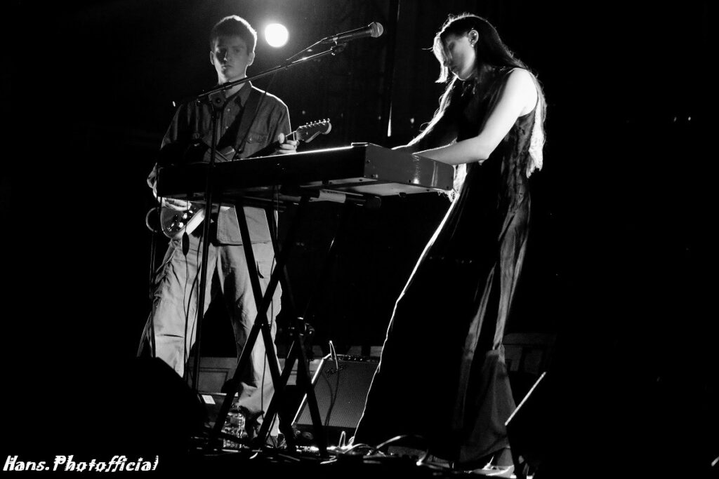 The Grey Space In The Middle verwijst naar een citaat uit een interview met David Bowie met de BBC in 2000: “The idea that the piece of work is not finished until the audience comes to it and adds their new interpretation and what the piece of art is about is the grey space in the middle.” Het gelijkvloers herbergt de bar en de kunstzone van het festival. In de kelder met laag plafond konden we genieten van het optreden van Fatamorgana uit Barcelona. Net als Boy Harsher later op de avond grossieren Louis Harding (synths) en zijn bevallige zangeres uit Belgrado, Patrycja Proniewska, in heel erg dansbare opzwepende grooves. Het duo speelde een week na Primavera Sound hun langste set ooit, maar kende geen moment verzwakking. Vooral Patrycja maakte indruk. Ze had gelukkig sportschoentjes aan en dat was nodig want stilstaan leek nooit een optie.