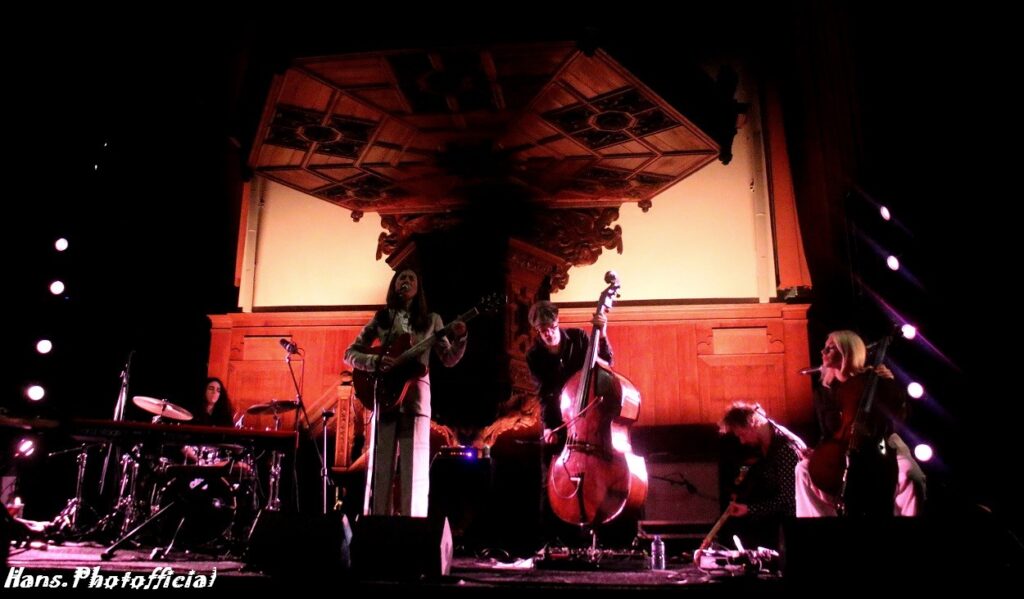 We zagen een kamerorkest beginnen aan iets wat hemels klonk want we hoorden PJ Harvey-achtige akkoorden, een dromerige stem genre Nico en Polly Harvey zelf in een I Think I’m A Mother-mood. We hoorden een contrabas en zagen Yoyo Röhm, die een verleden heeft bij Swans, Mick Harvey en Einstürzende Neubauten. Links zat ene Kristof Hahn, van Swans natuurlijk. Dit waren de vaste Sometimers, de Others van dienst waren drumster Sara Neidorf en celliste Rachel Maio.